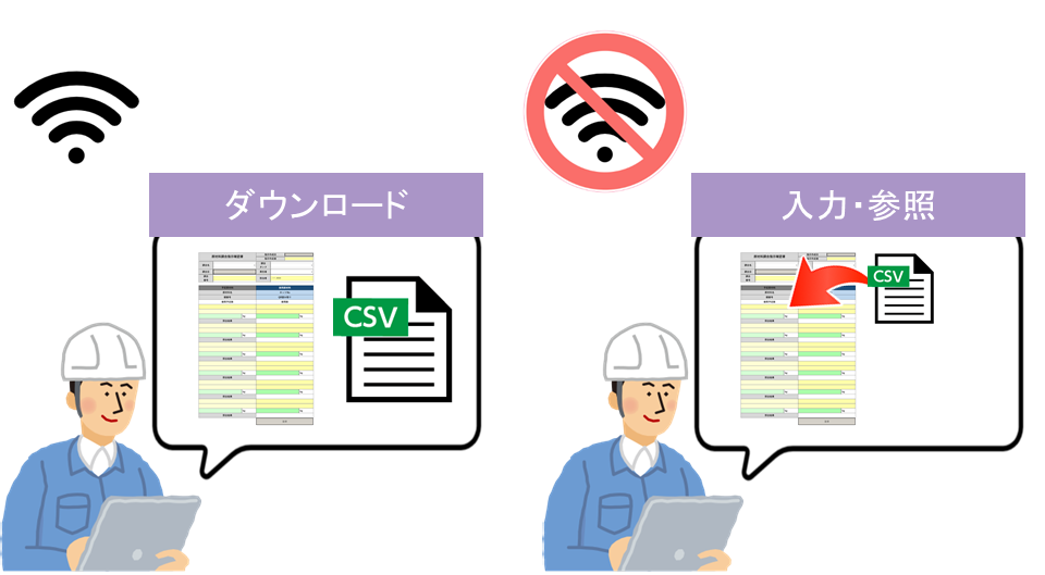 現場帳票電子化システム「XC-Gate.V3(エクシーゲートブイスリー)」の便利機能の1つで、オフラインモードでマスタデータを参照することができる機能「CSVタグ」をご紹介します。