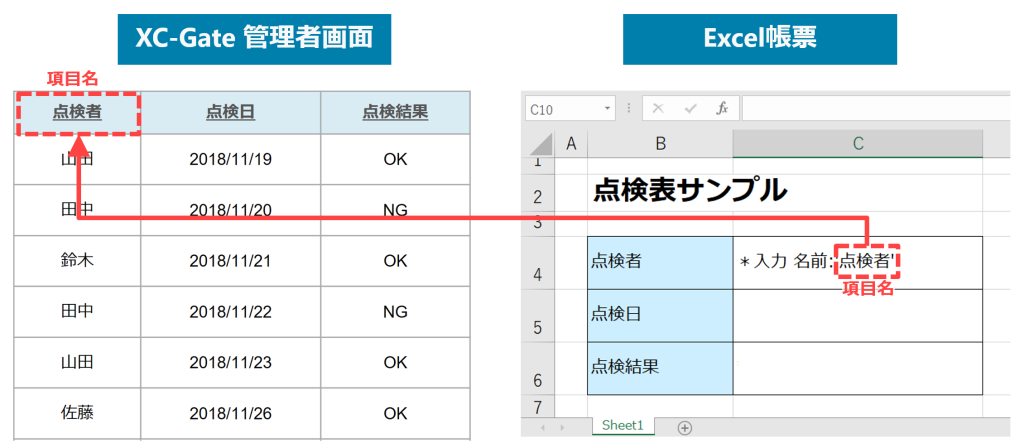 実は、XC-Gateの帳票上にある入力項目の一つ一つには、下画像のように「名前」がついています。