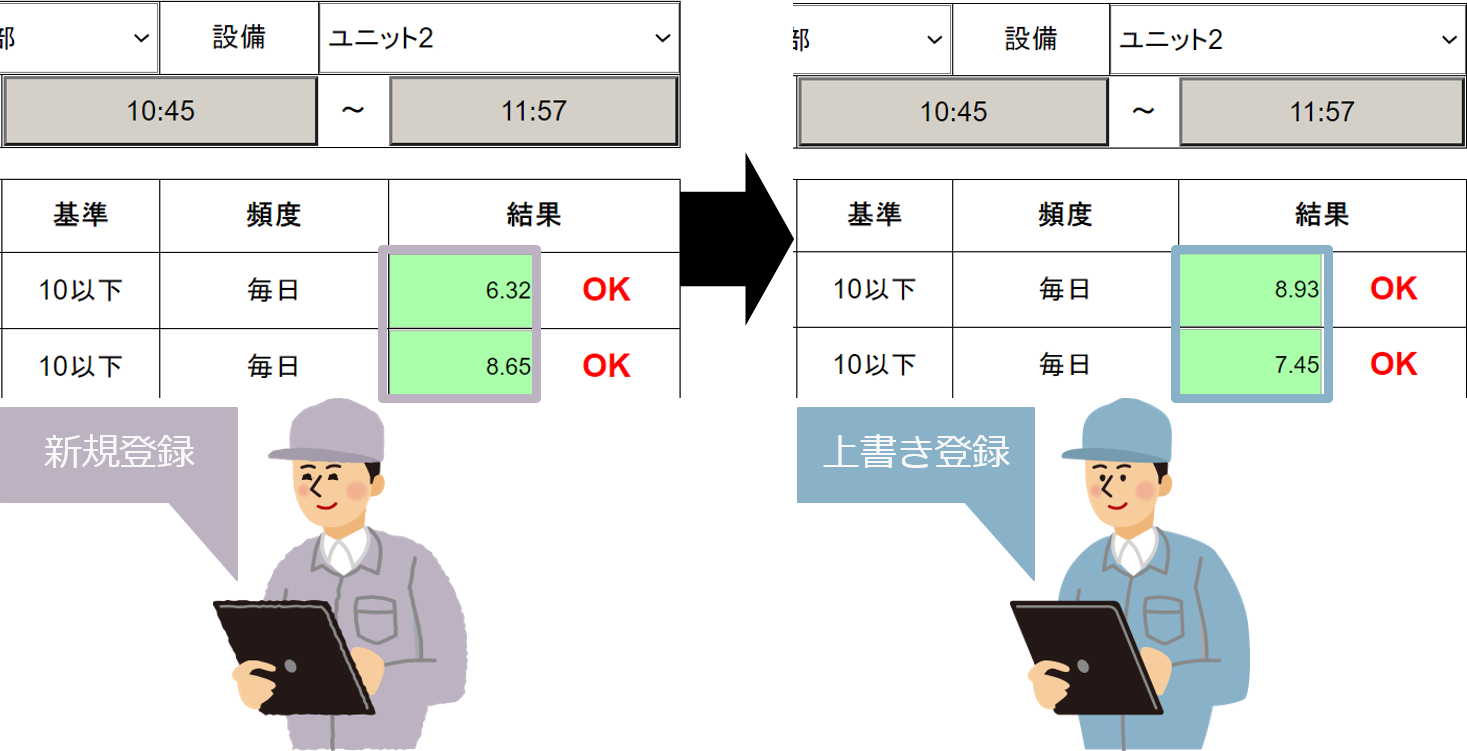 履歴管理機能_実績の上書きイメージ図