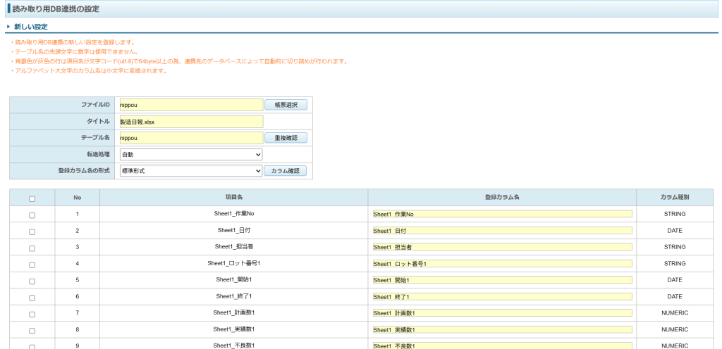 別システムと連携させたい=読み取り用DBに転送・保存したい帳票・項目を管理者用の画面から設定します。