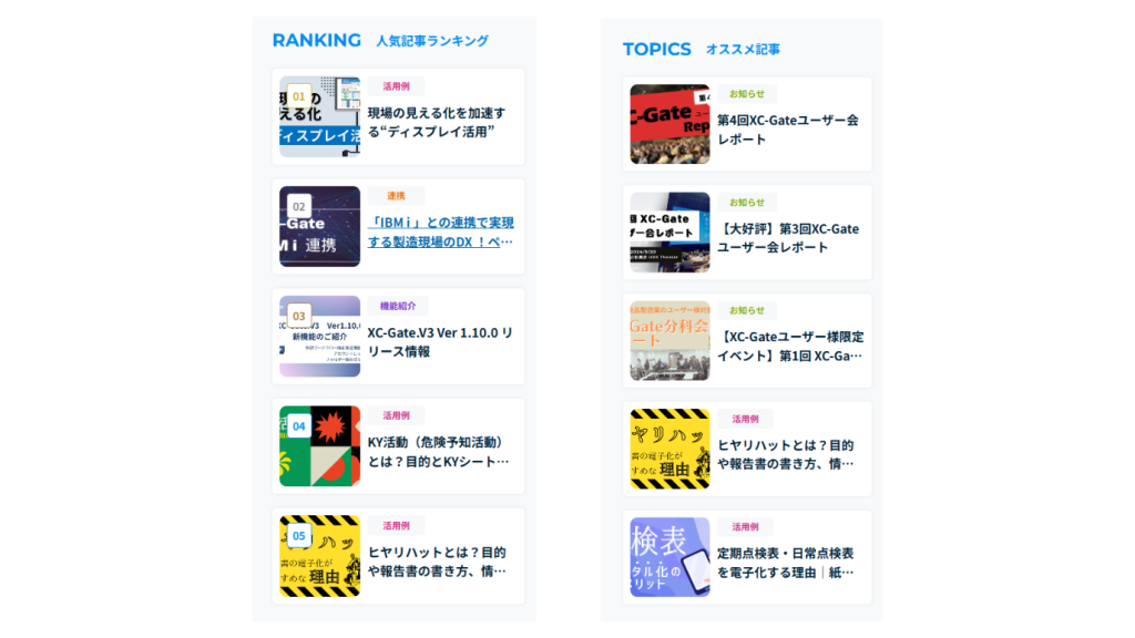 XC-Timesにある記事の中で、人気のある記事や弊社がおすすめする記事が表示される機能が追加されました。