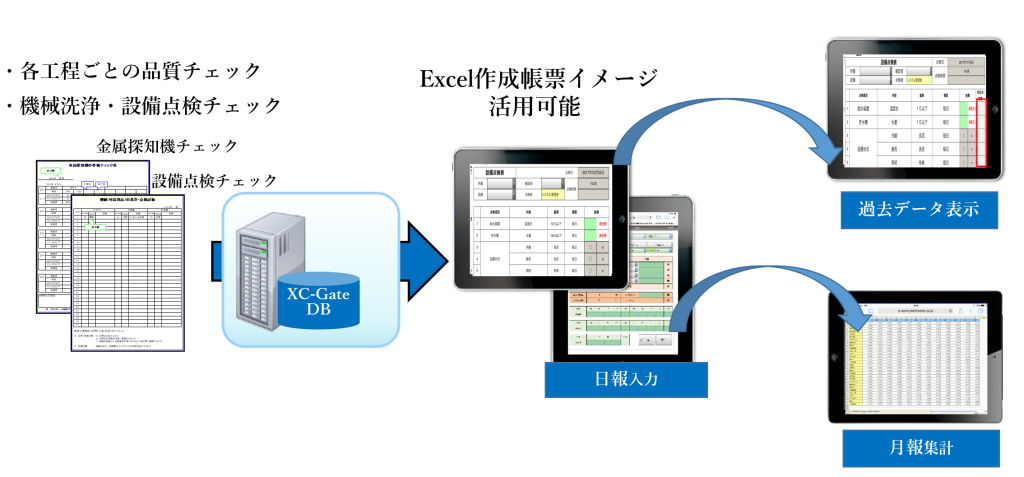 XC-Gateでは、Excelで作成したチェックシートをそのまま電子化し、タブレットで入力できます。